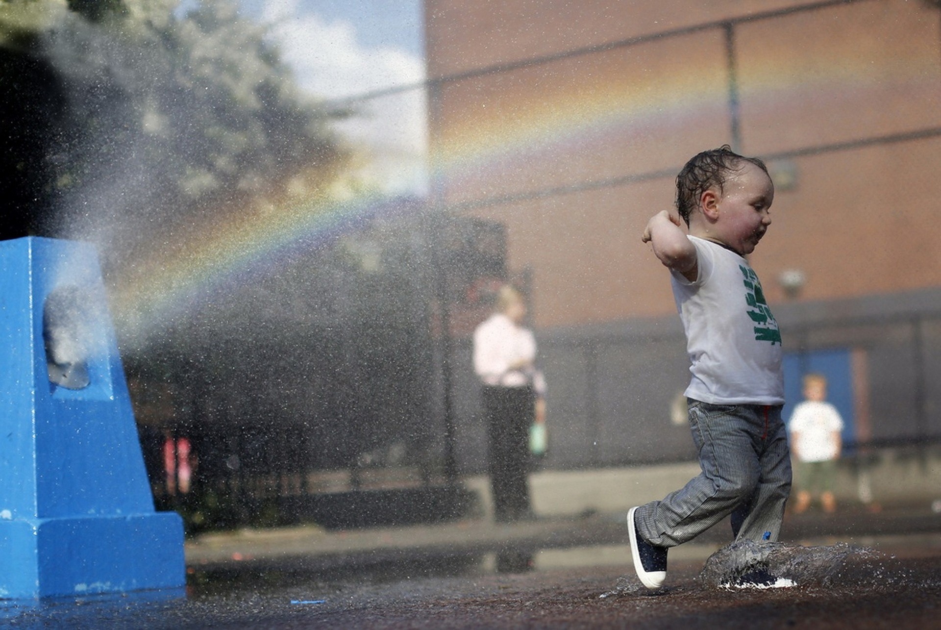 Ребенок радуется каплям воды