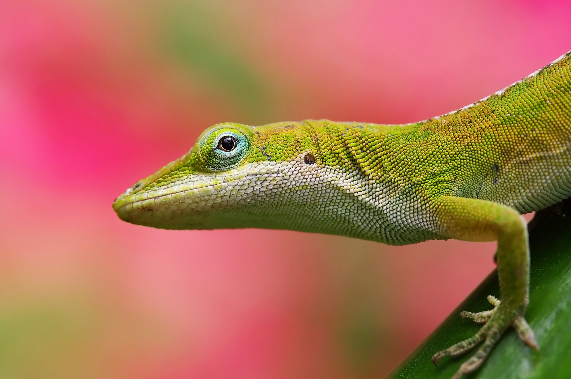 Ящерица на розово-зелёном фоне