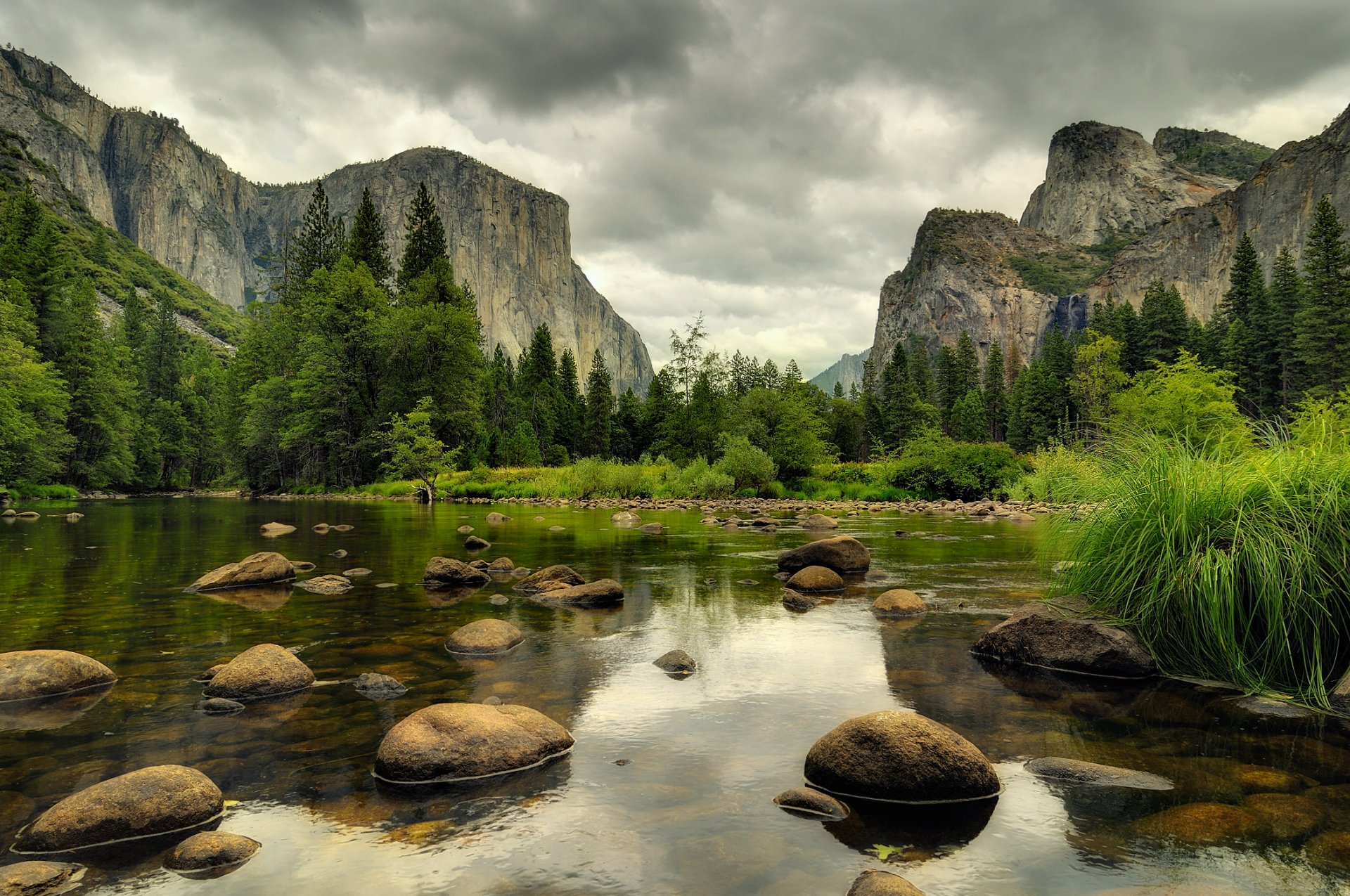 Серый день горного леса