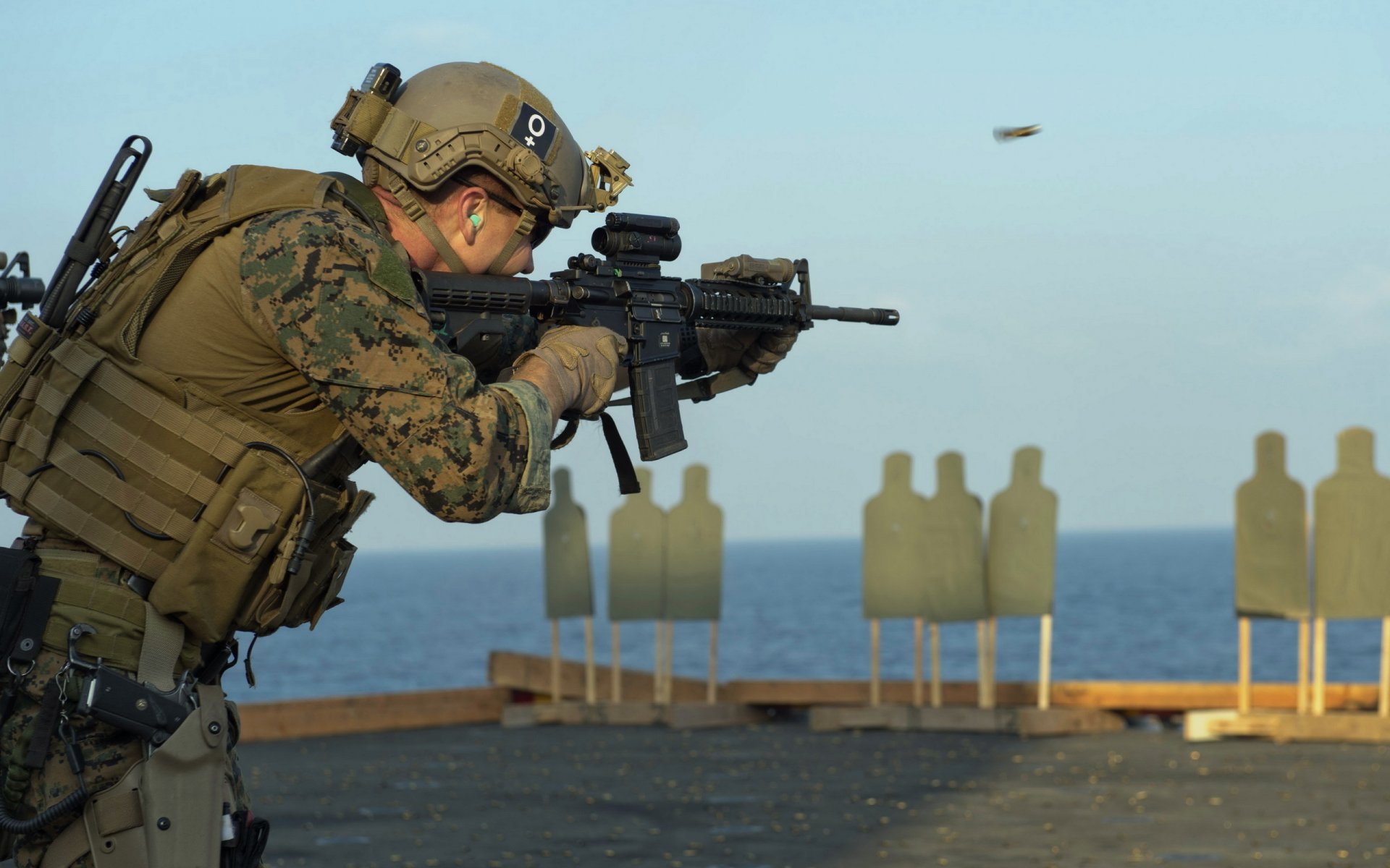 Воин будущего с лазерным мечом в доспехах при полной амуниции