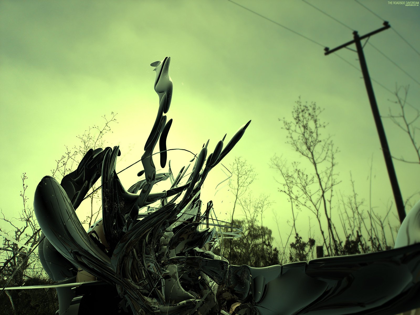 Рисуноко изображения горных и лесных пейзажей среди аномалии и катаклизма