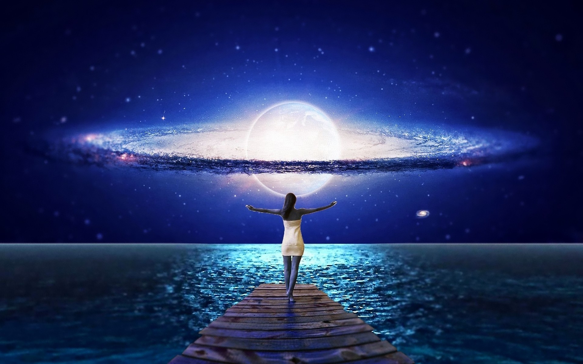 Космический арт с девушкой на фоне планеты