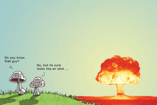 Двух гриба обсуждают атомный взрыв