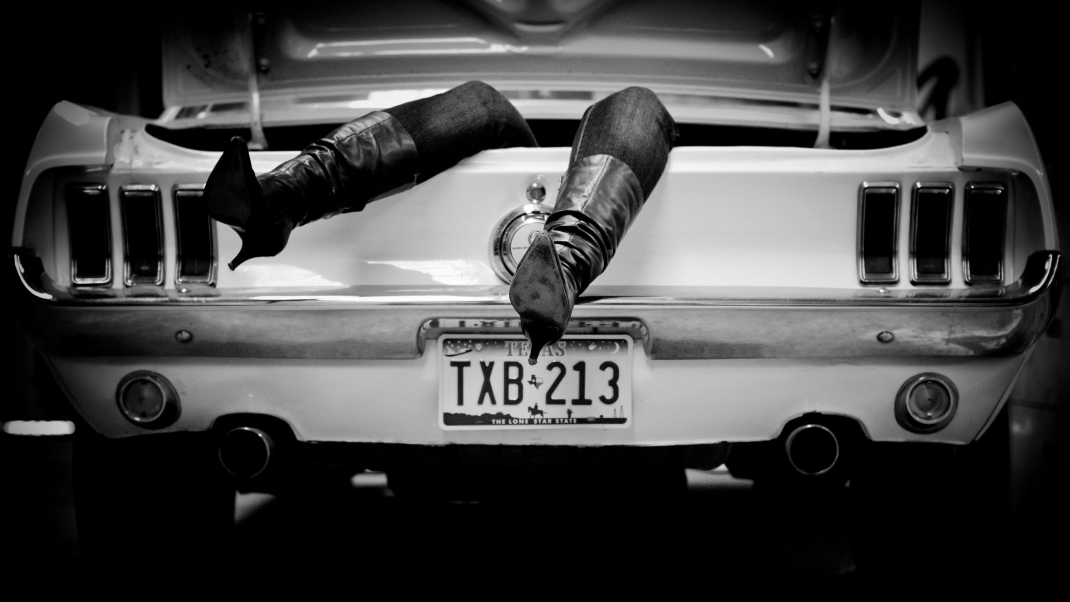 Эмбер херд на дороге в лесу закрывает багажник машины