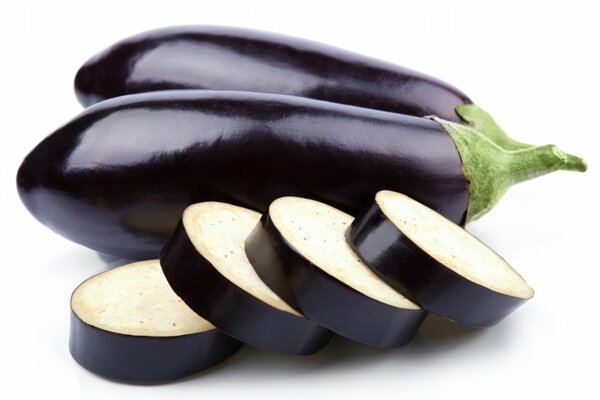 Разрезанные баклажаны. Овощи на белом фоне. Дольки баклажана