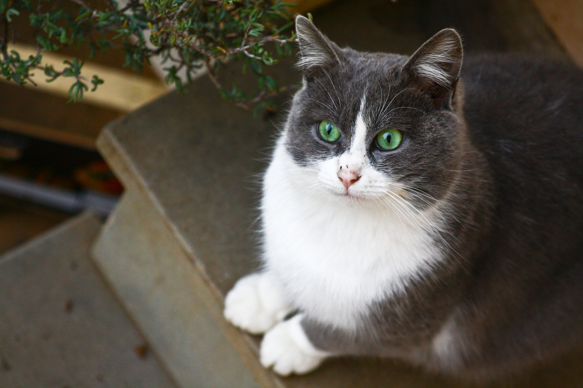 Взгляд бело-серой кошки