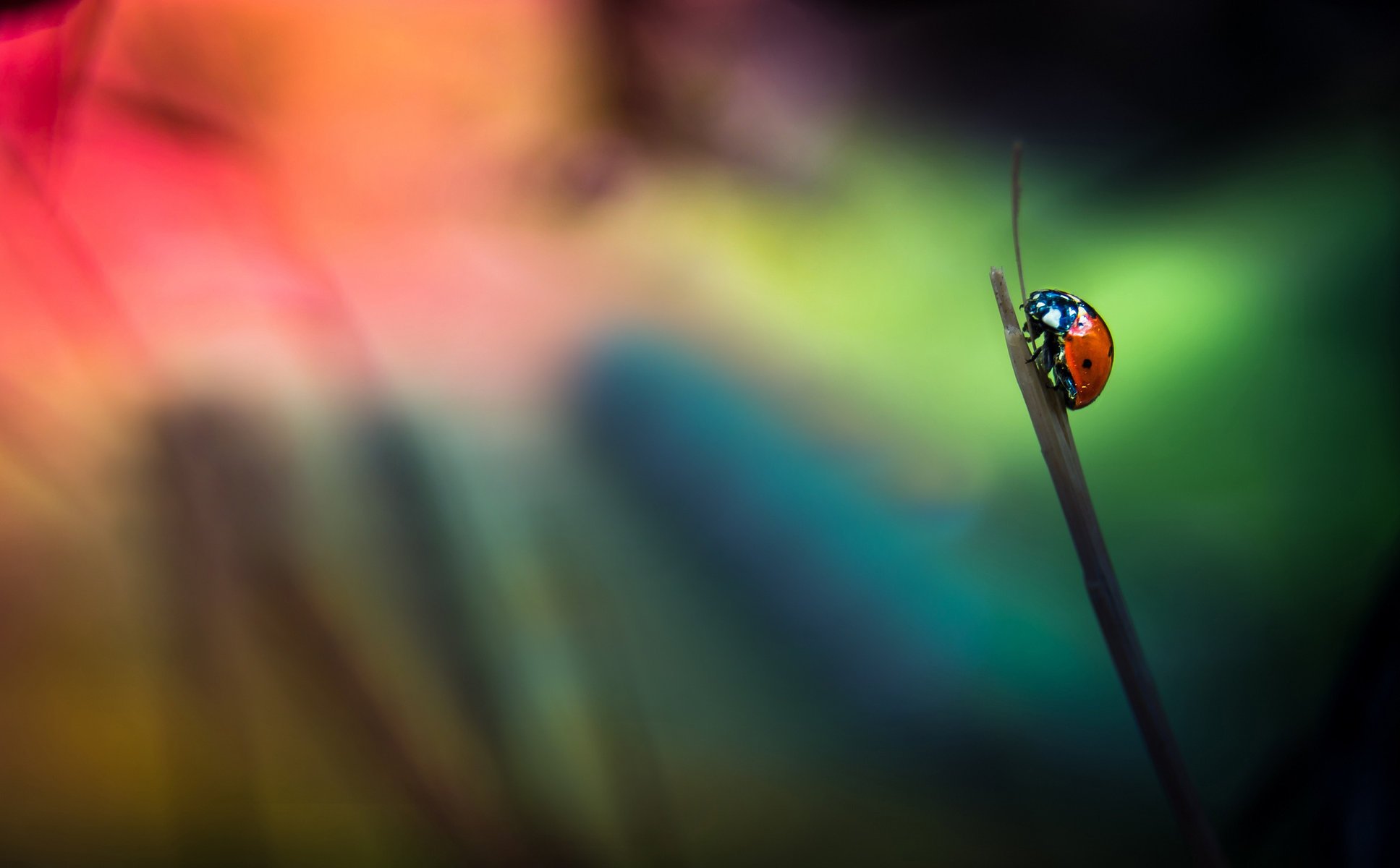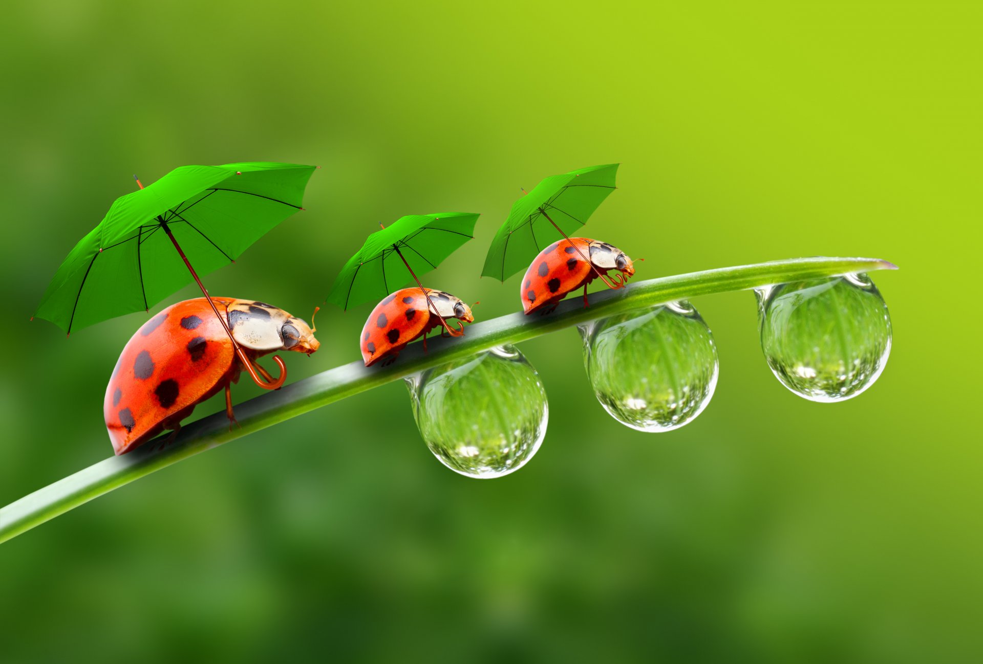 Позитивный креативный фон лето с бабочкой, божьей коровкой, ромашками, зеленью, листьями новые технологии слияния природой