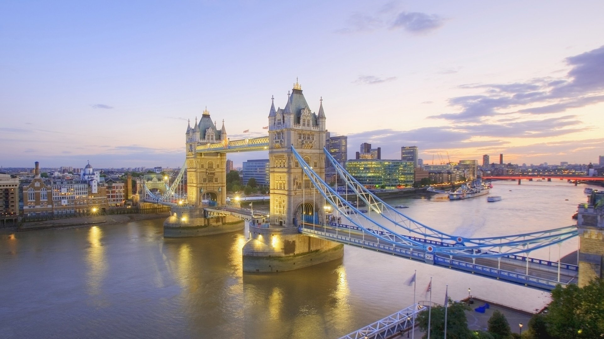 Великолепный мост на реке с каменными вышками