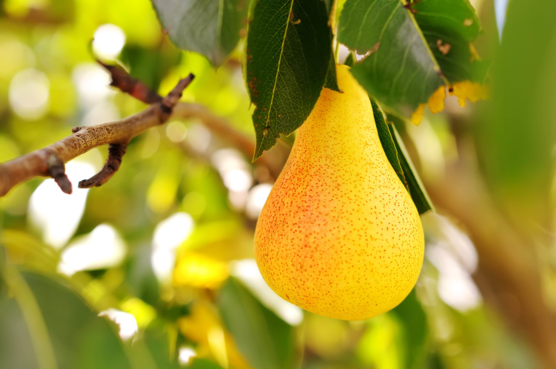 Натюрморт корзинок с грушами, яблоками и бананами, грецкими и лесными орехами и стощими на столе бокалом вина, красной толстой свечой на канделябре и бутылкой вина