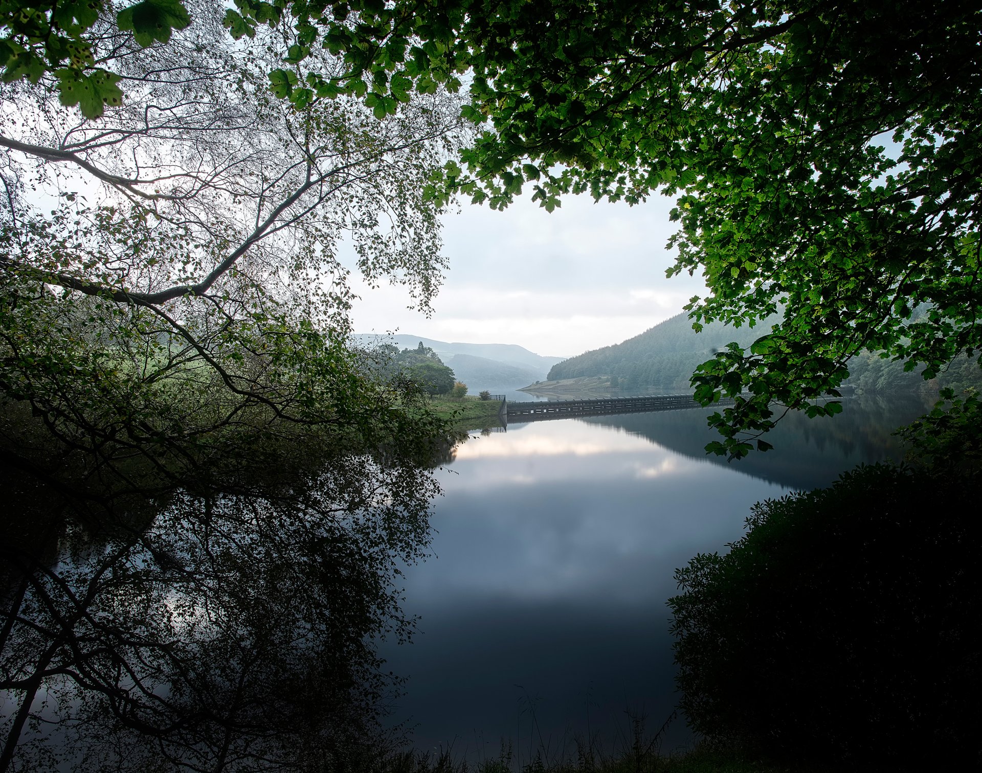 Мост над заливом объединяет два берега, виднеются красивые горы в тумане
