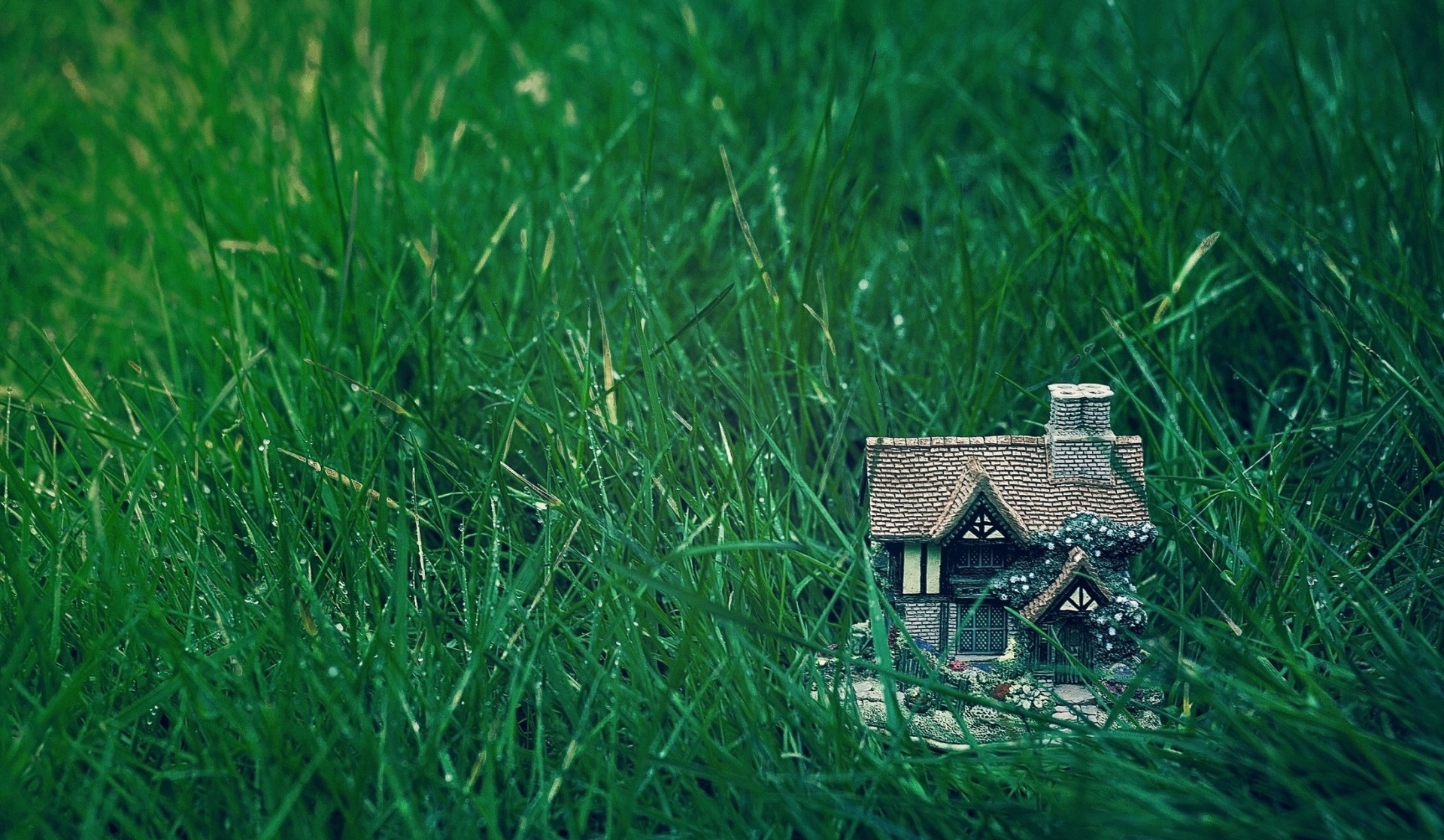 Игрушечный дом на зелёной траве