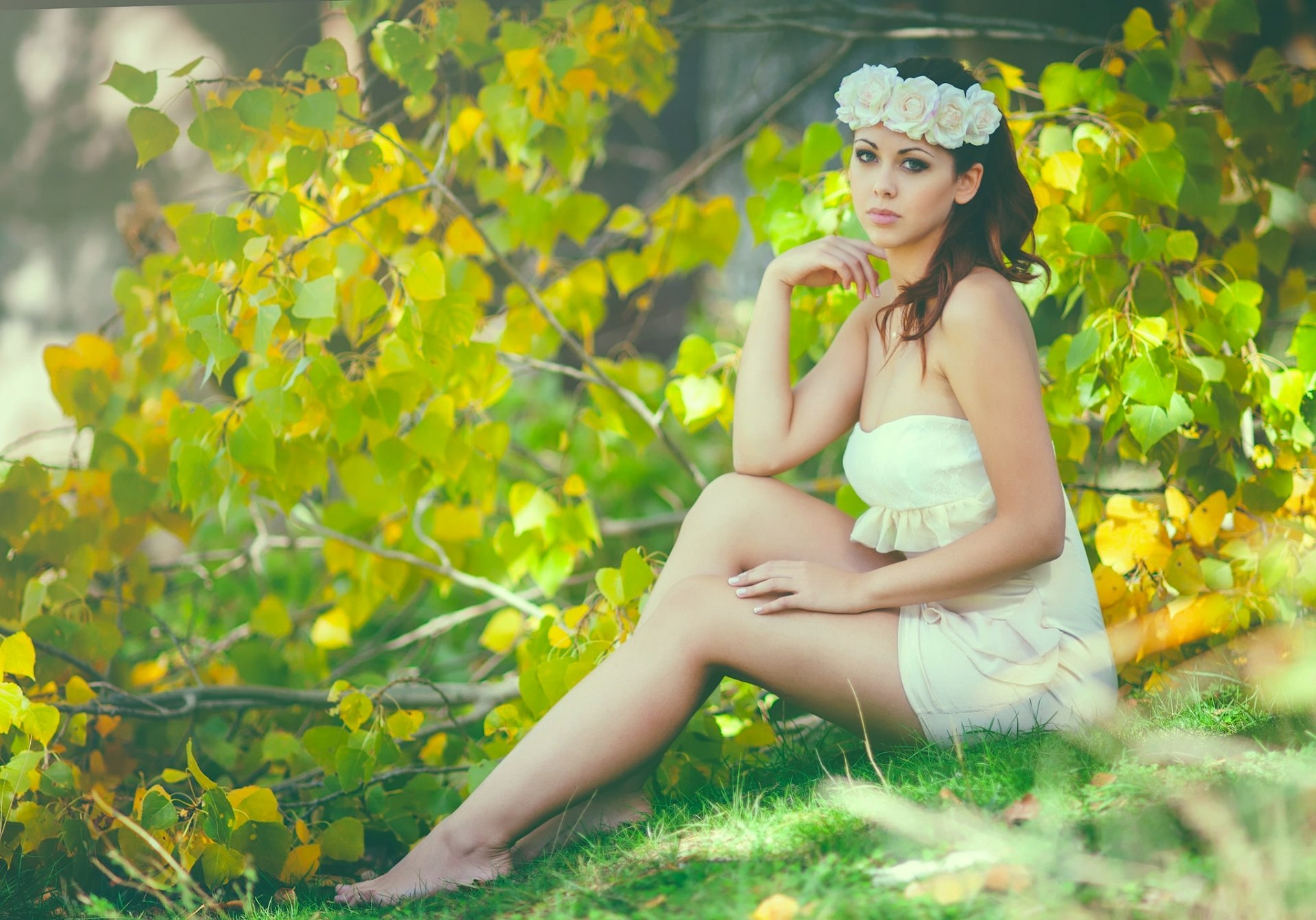 Симпатичная девушка с венком в голове