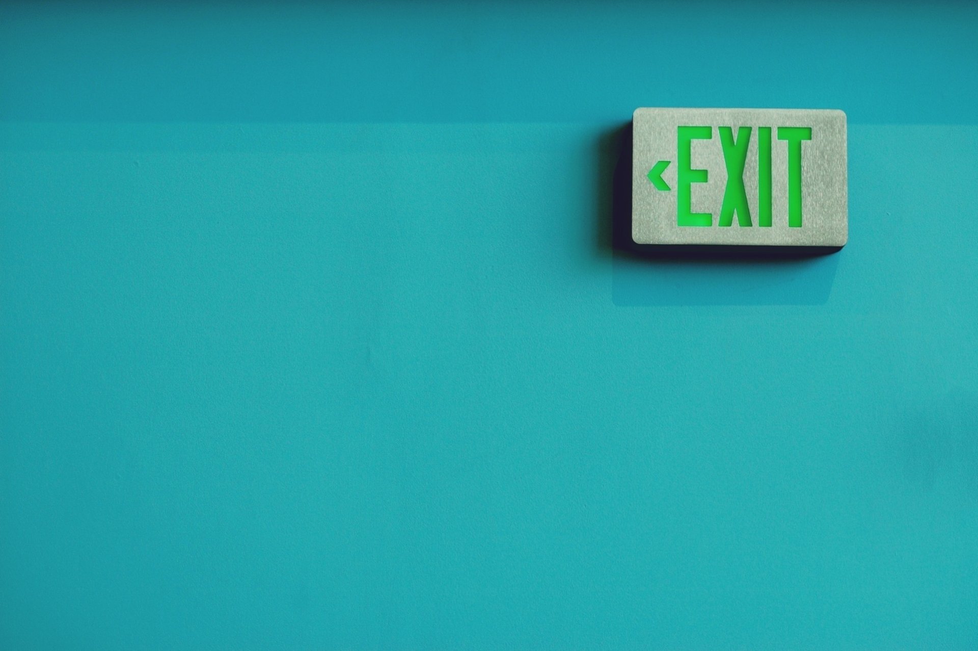 Указатель выхода на фоне голубого цвета