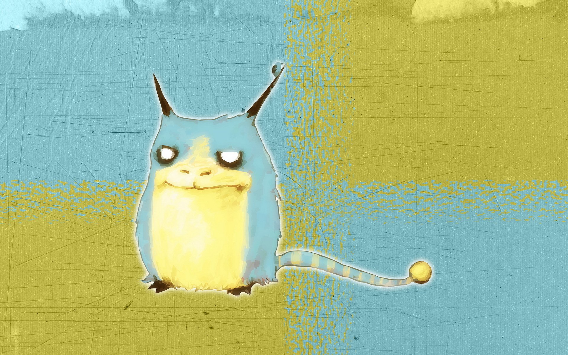 Рисунок монстрика на желто-голубом фоне