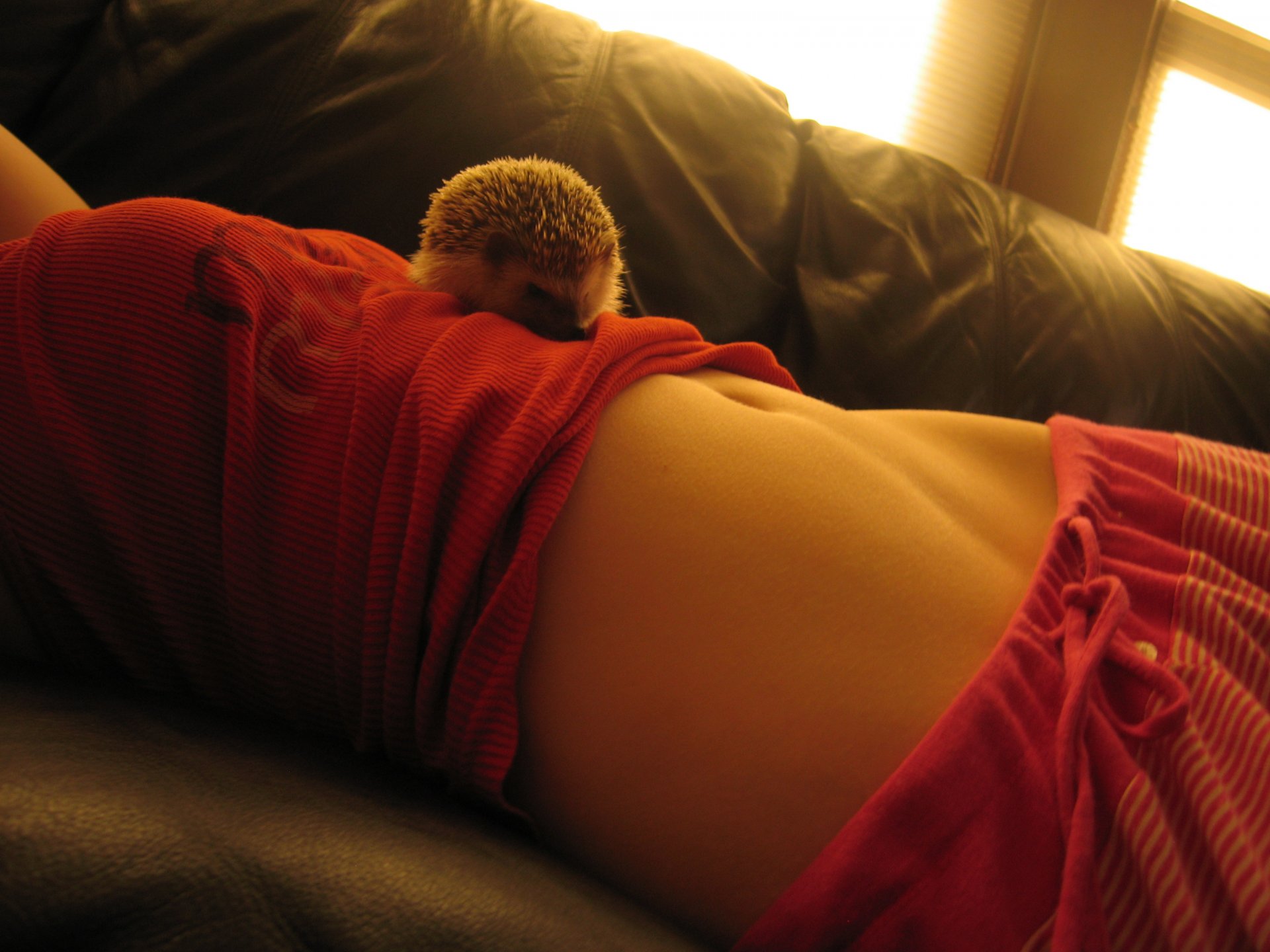 Котёнок с интересной расцветкой шерсти спит животом наверх