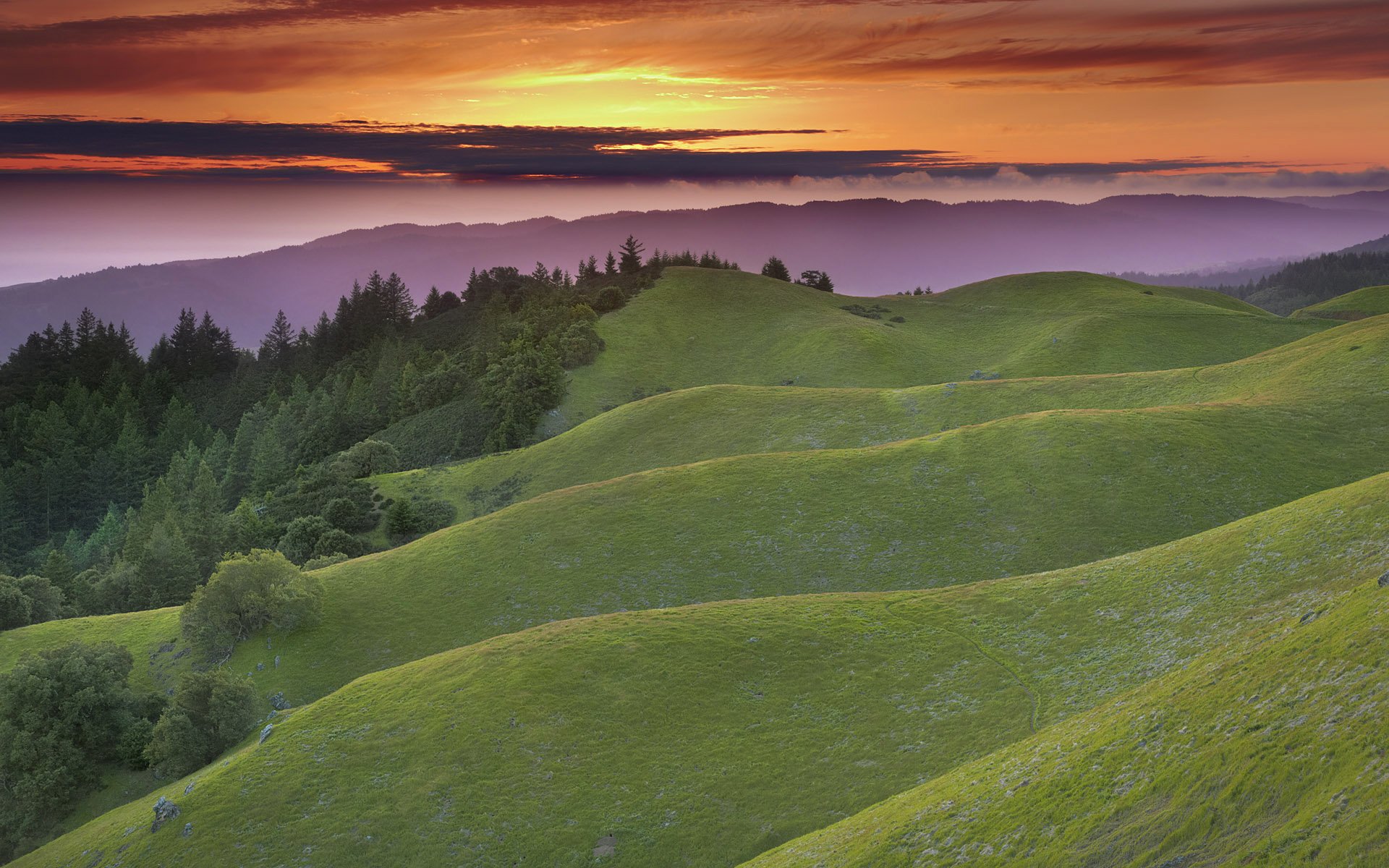 Зелёные холмы Ирландии покрыты мхом и растениями