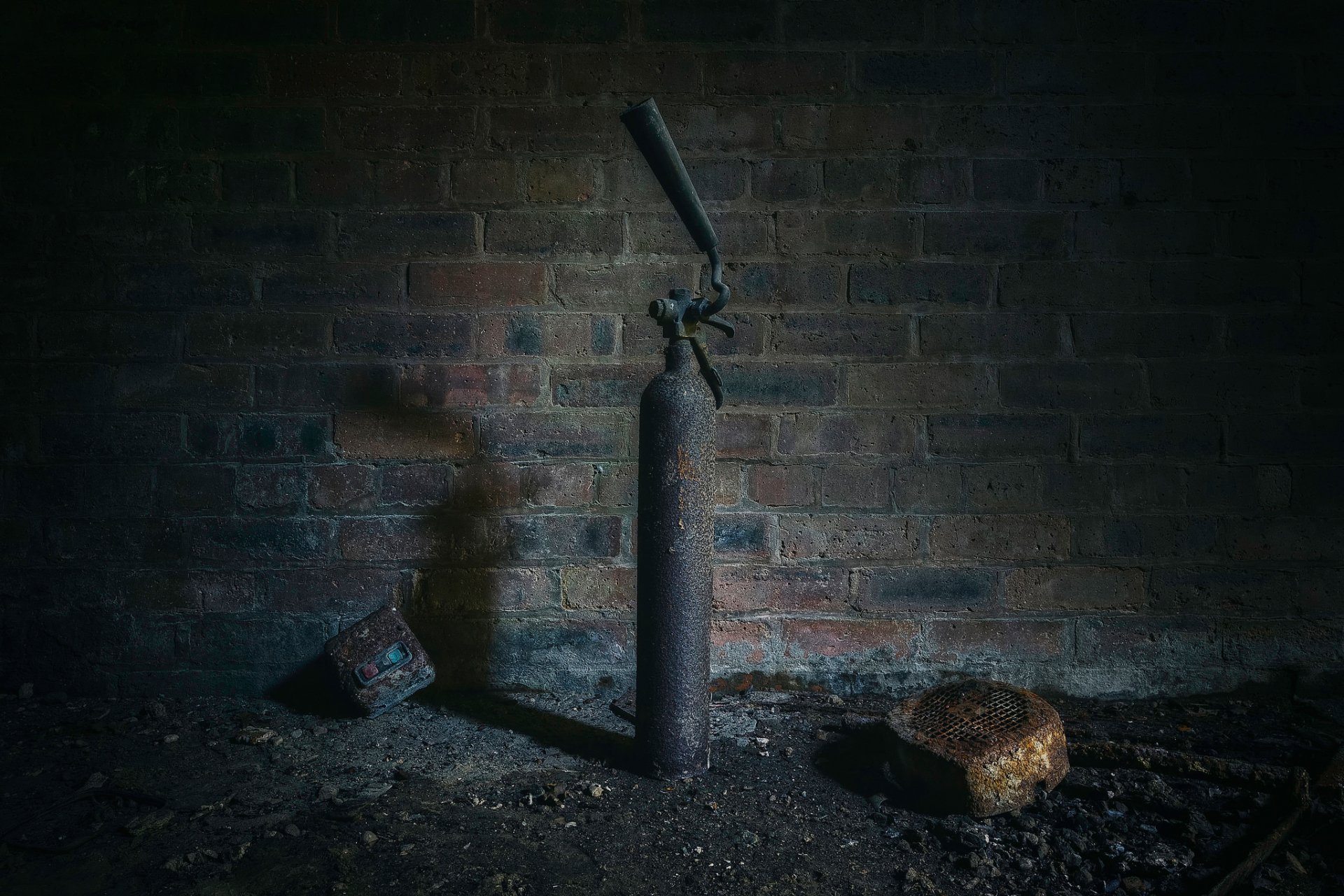 Кирпичная стена с обваливающейся штукатуркой и трещенами