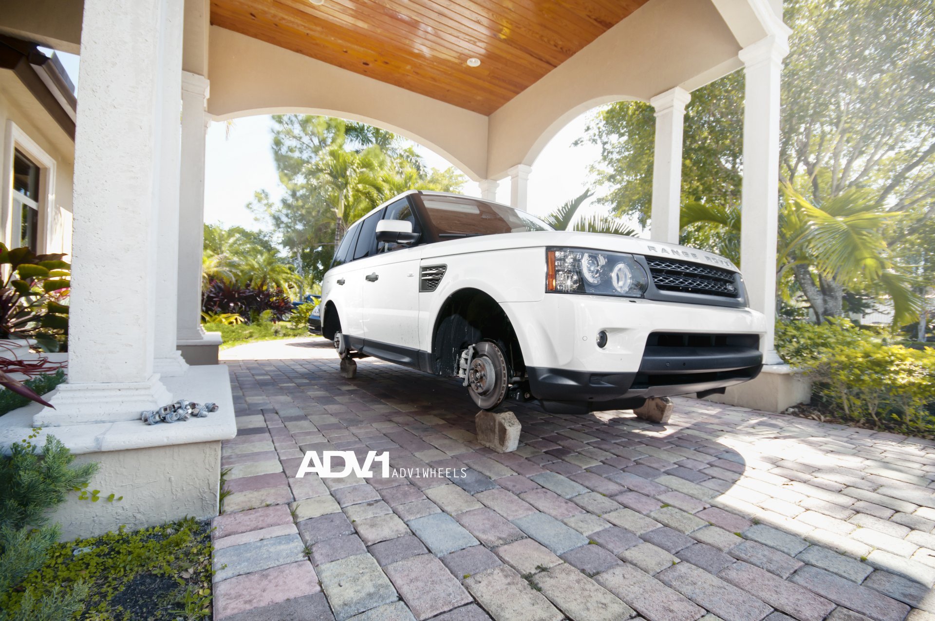 Белый Land rover адв 1 на кирпичах