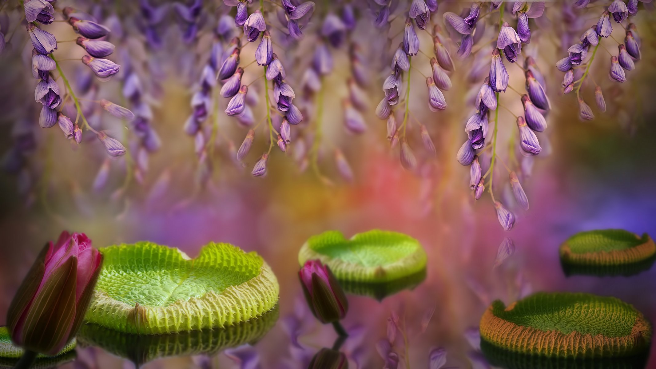 Розовая нежная кувшинка подставила свои лепестки солнцу