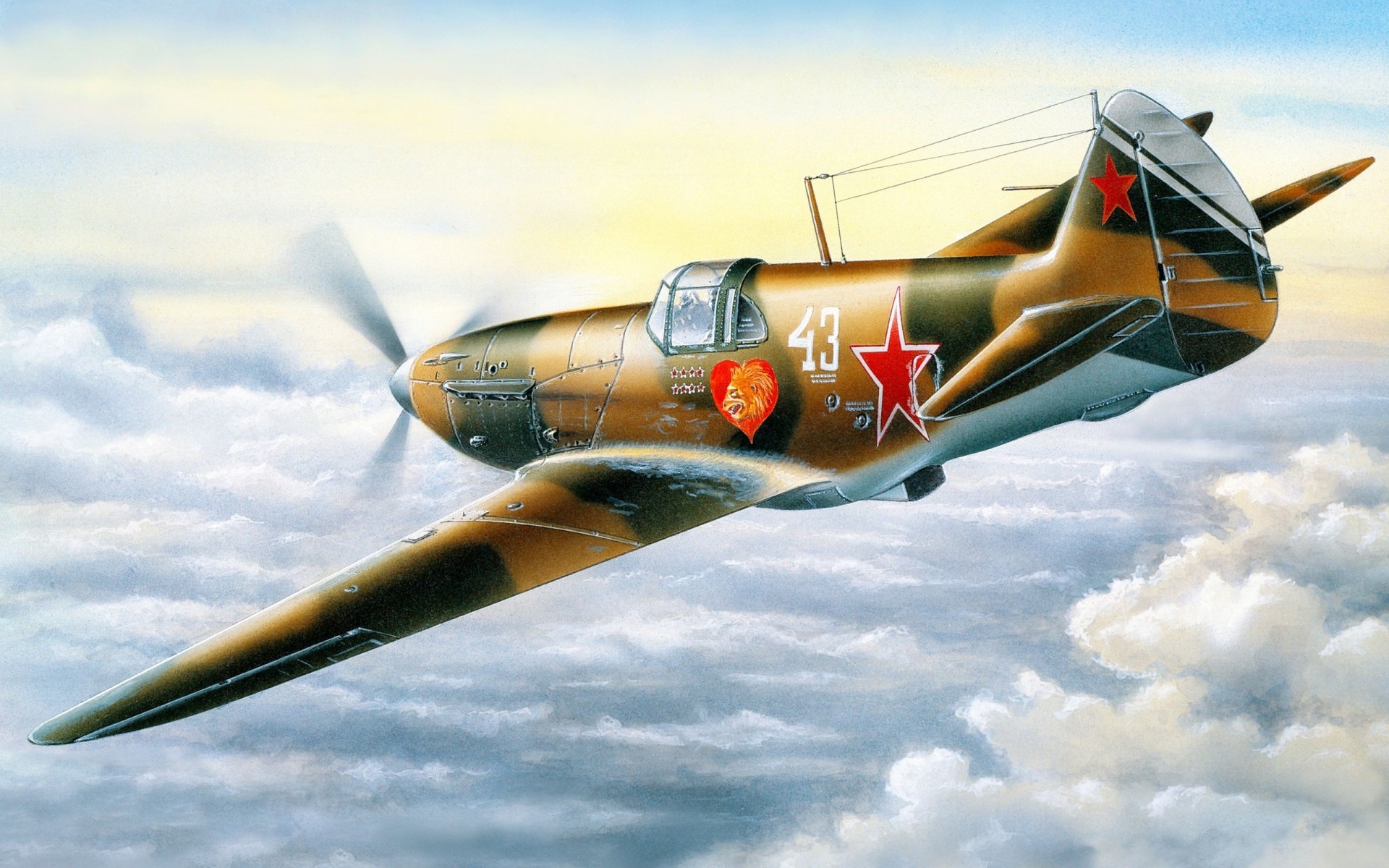 Самолёт лагг-3 летит над облаками днем