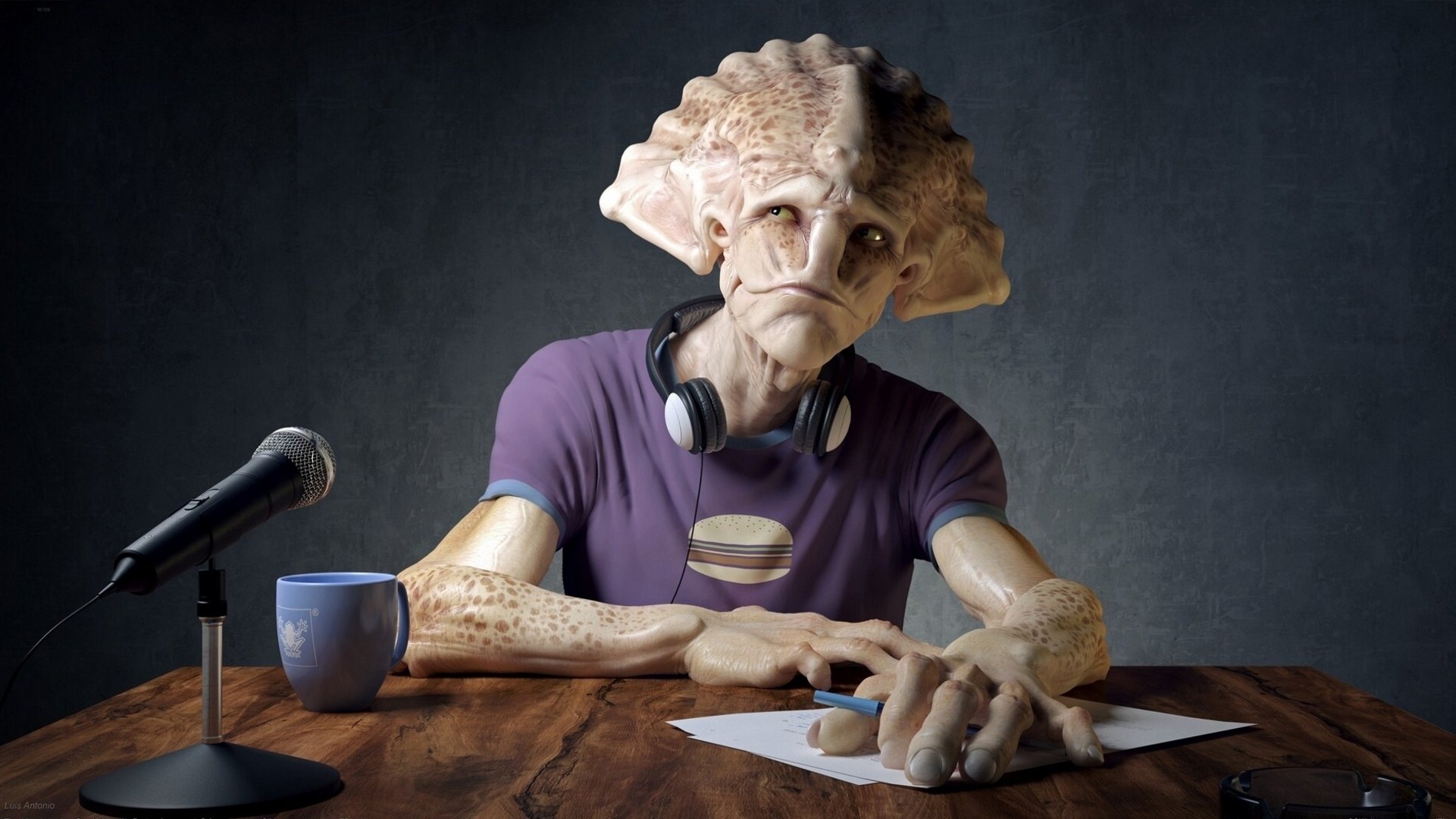Инопланетянин Луис Антонио задумался над листом бумаги