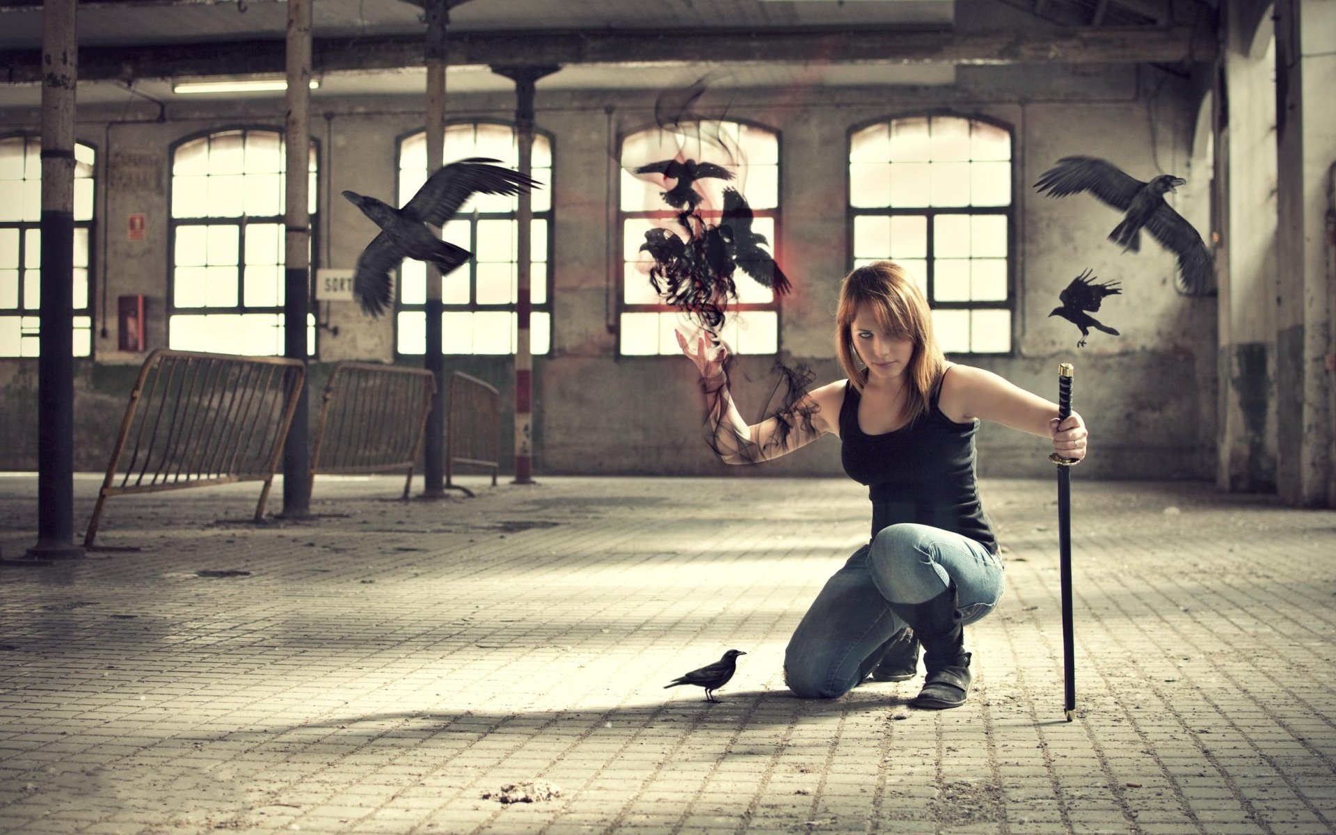 Девушка- маг с воронами