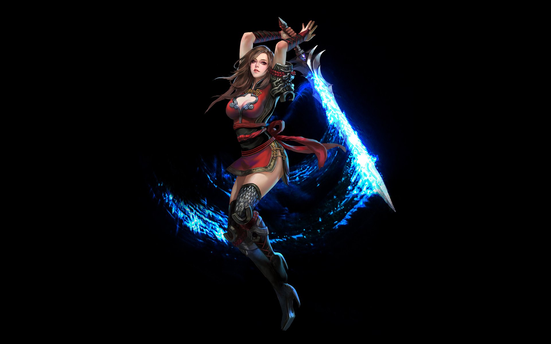 Девушка с оружием и мечом в руках