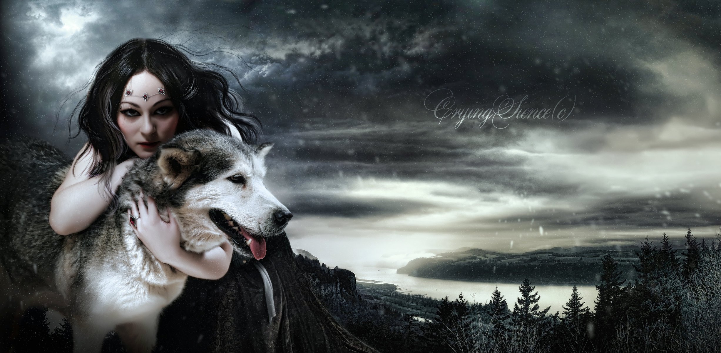 Темный эльф Моргана из Лига Легенд на фоне полнолуния
