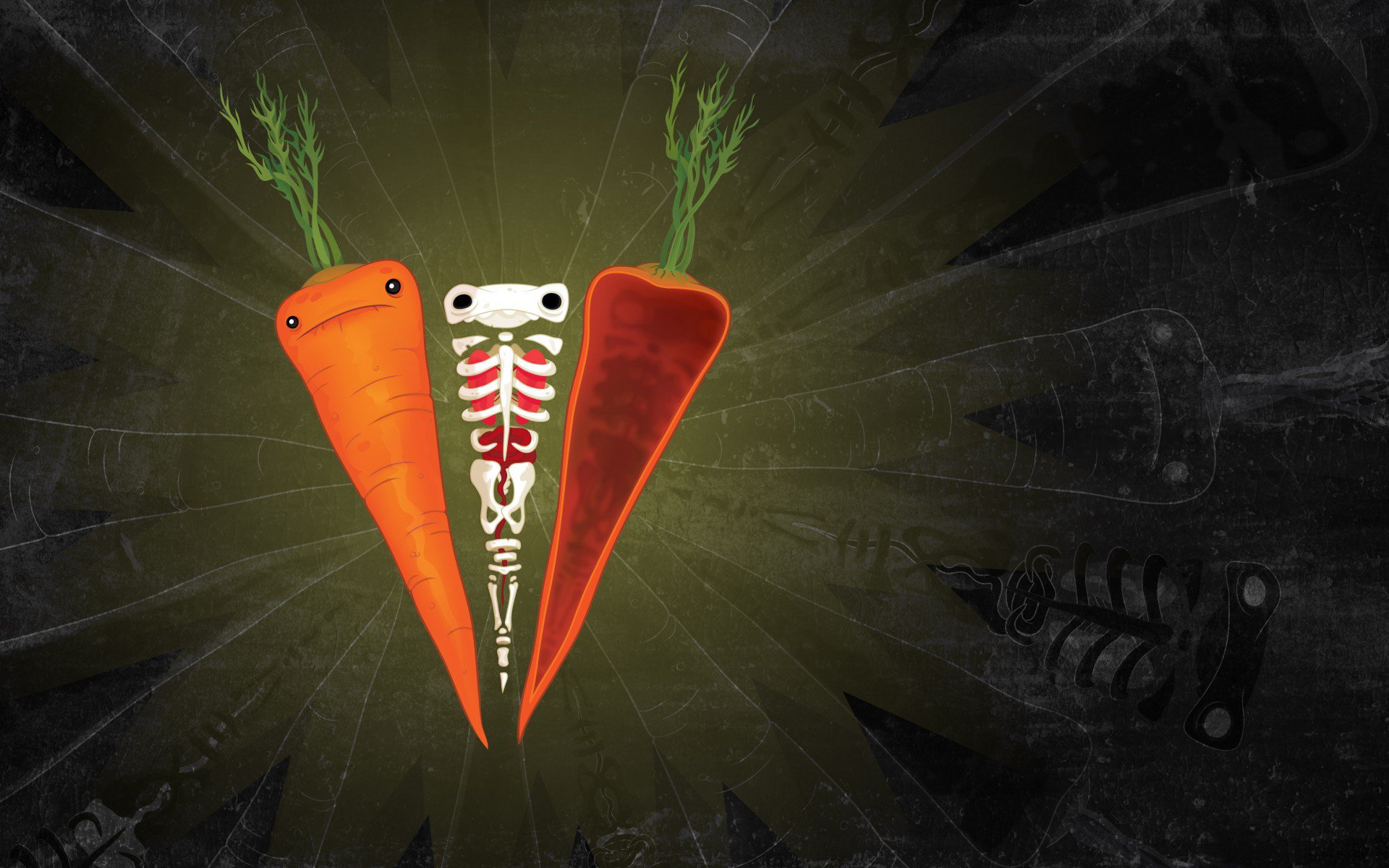 Необычный рисунок со скелетом морковки