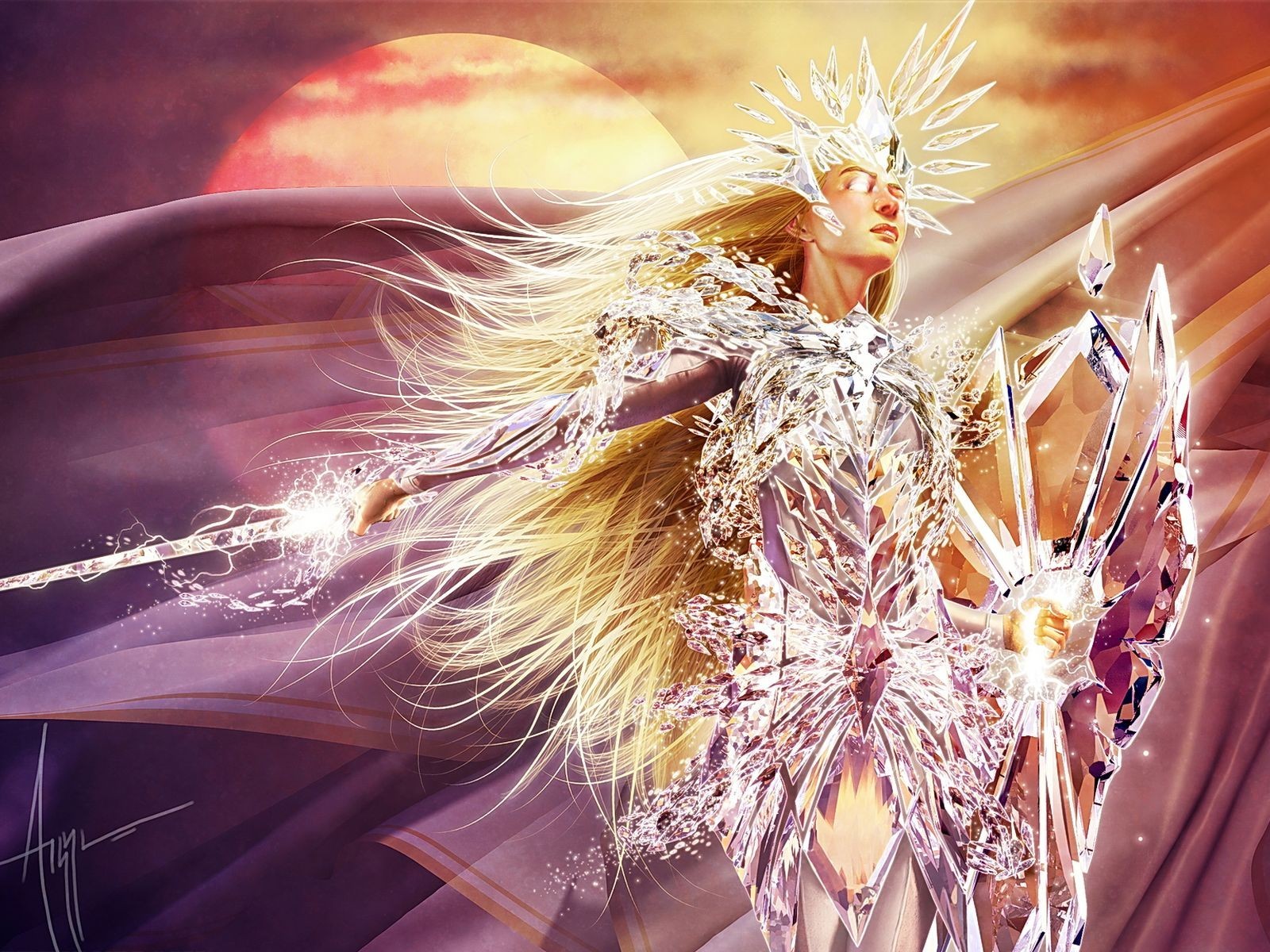 Сказочный персонаж девушка воин в ледовом облаченьи