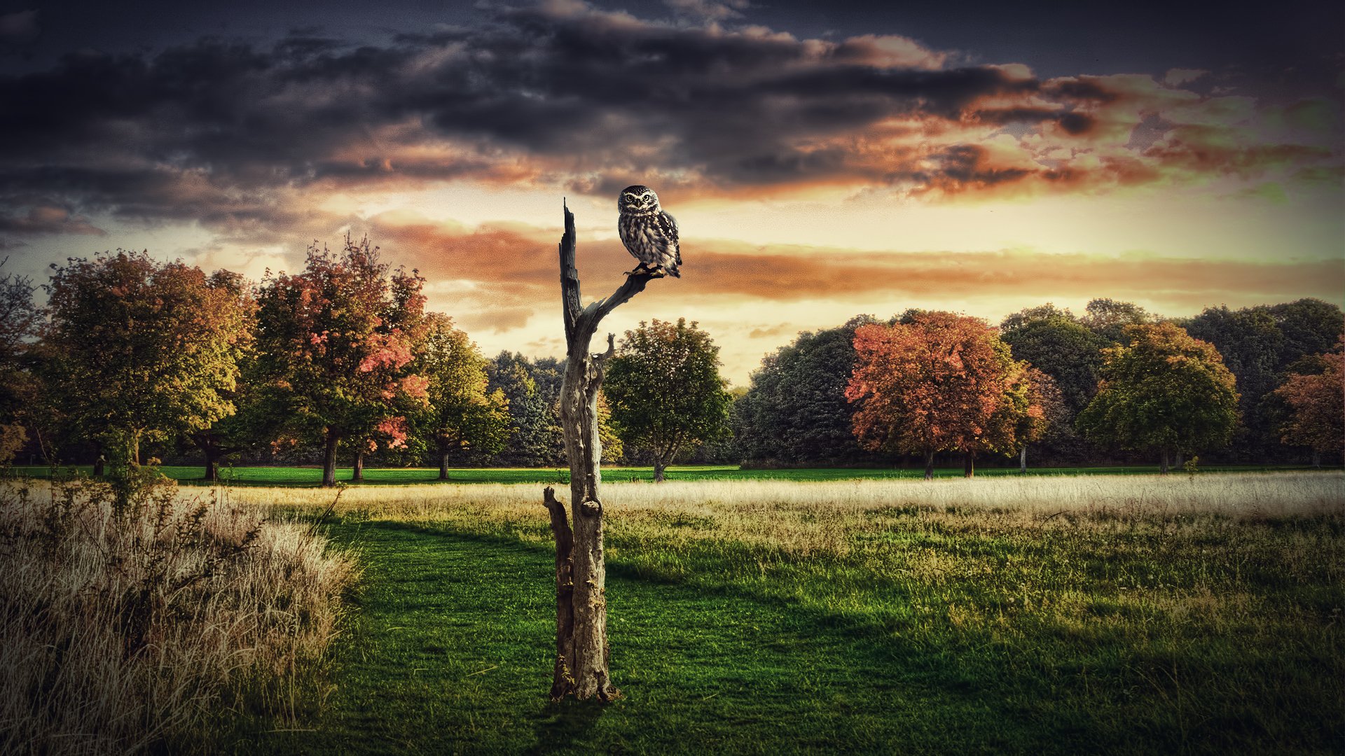 Белый гриб стоит в зелёном мхе, на грибе нём лежит сухой лист, на размытом зелёном фоне