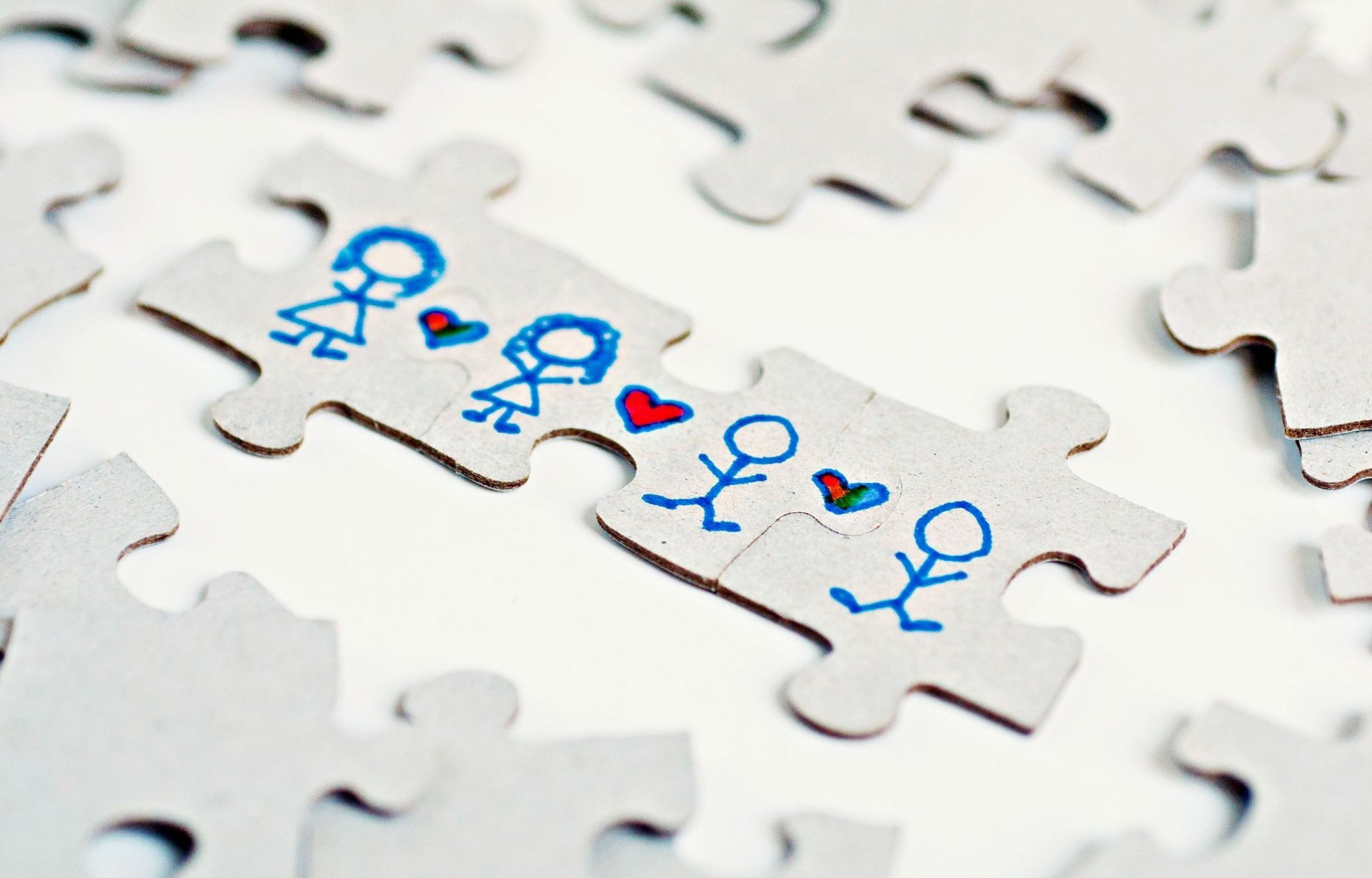 Надпись “i love you” с красивой вставкой их пазлов на бежевом фоне