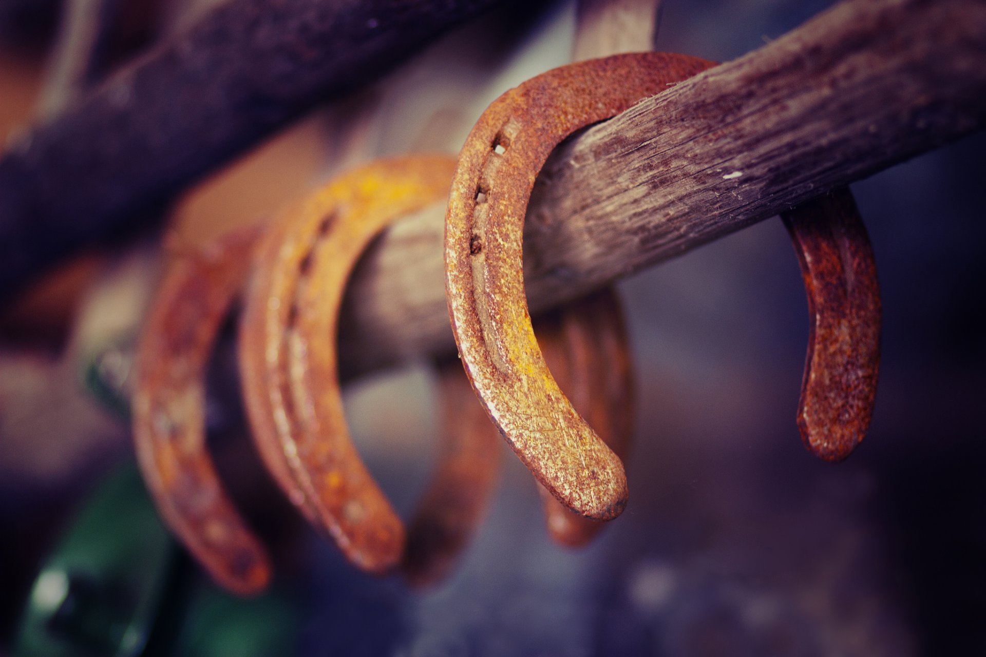 Макро снимок подков на палке