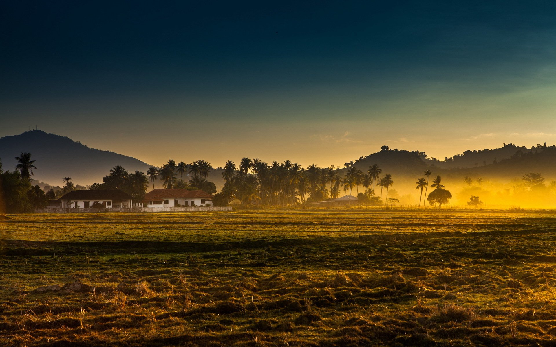 Поляна жолтых одуванчиков встречает лучи солнца из за густых сосен