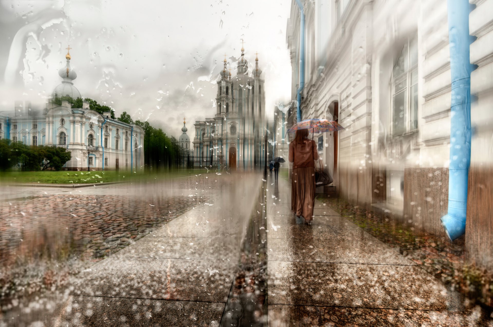 Девушка в длинном плаще под зонтом в санкт-петербурге