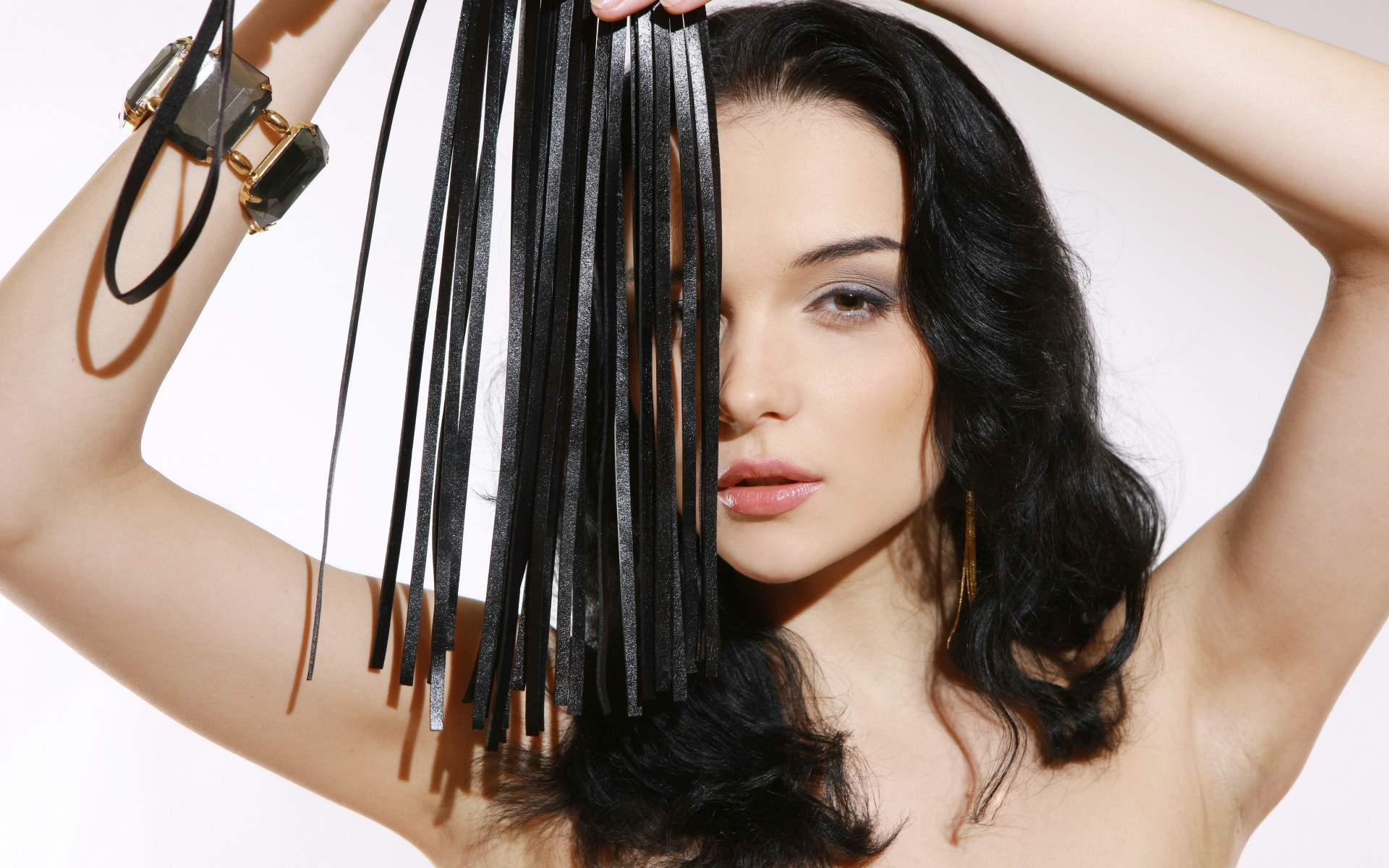 Портрет брюнетки, украшенной массивным браслетом, держащей в руках плеть