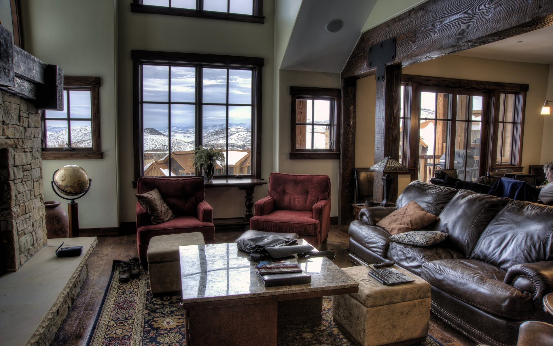 Завараживающий вид из окна, это где-то в горах. Чудесный дом
