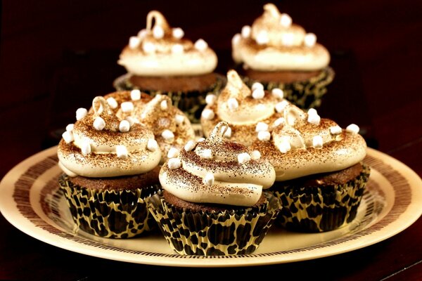 Кексы шоколадные на тарелке с присыпкой