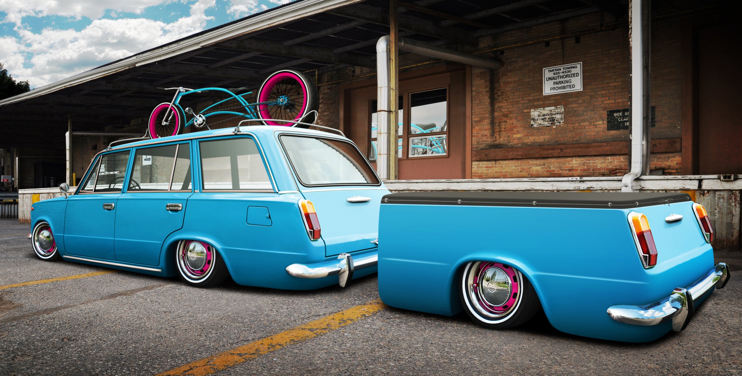 Машина с прицепом. машина голубого цвета