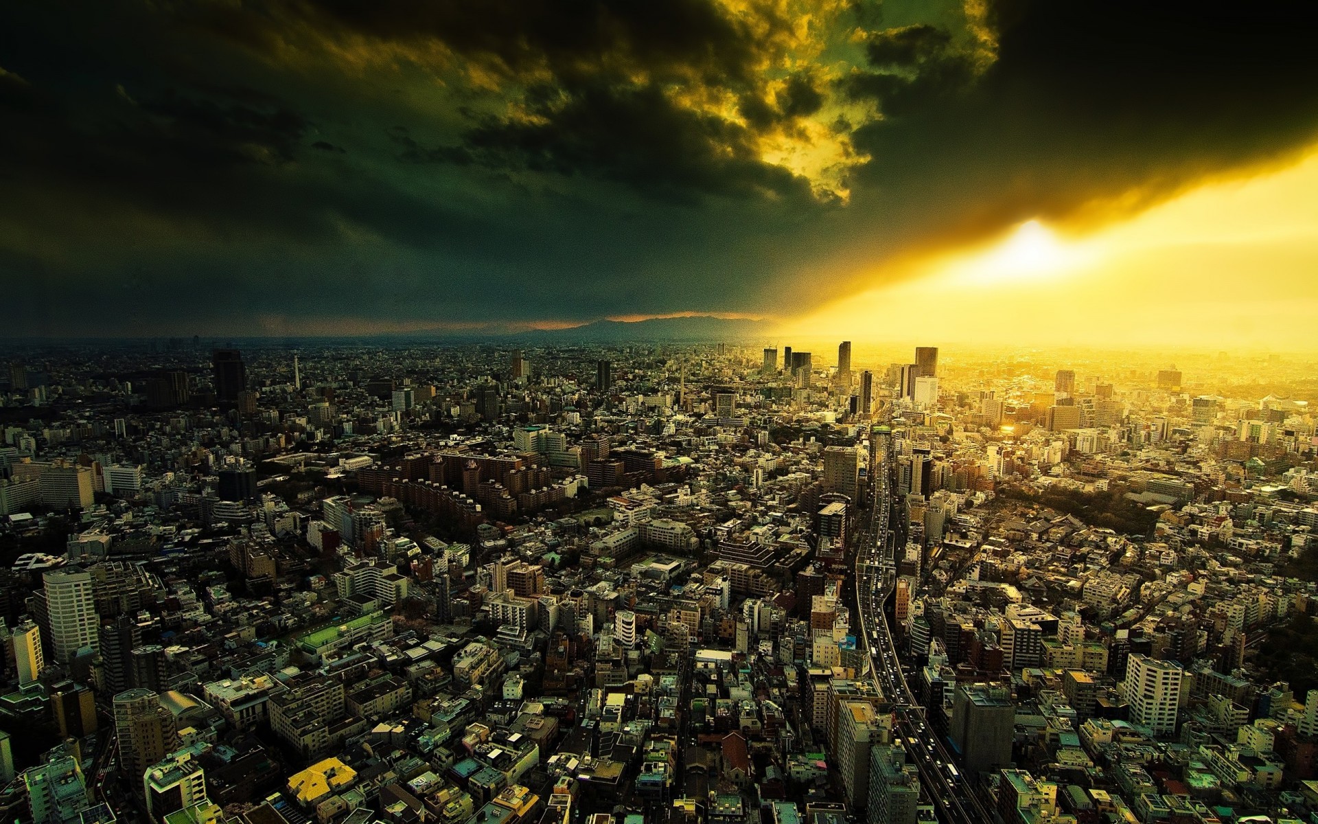 Просвет на небе над городскими зданиями