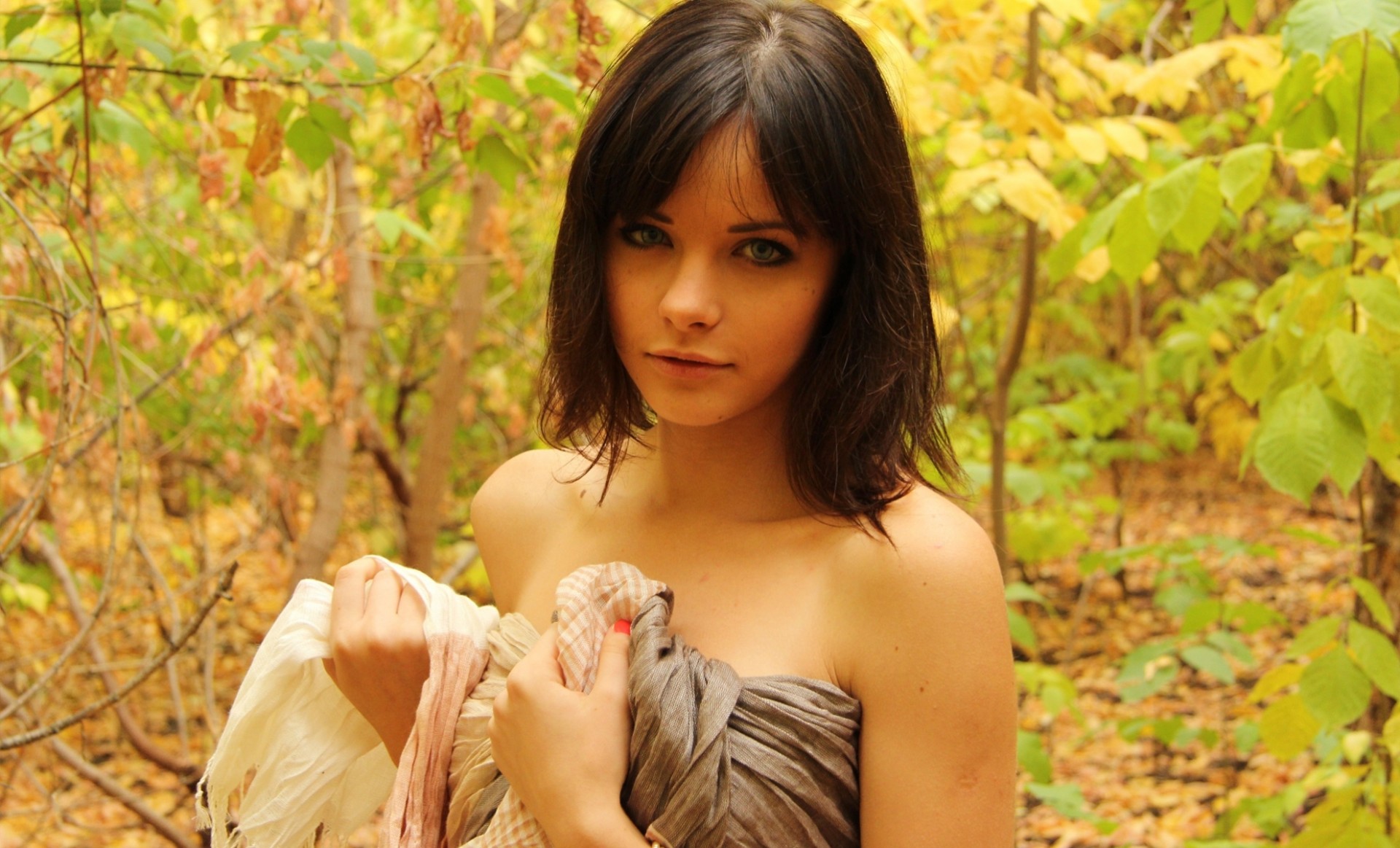 Девушка брюнетка лежит на белой простыне, держа в руках бокал с красным вином