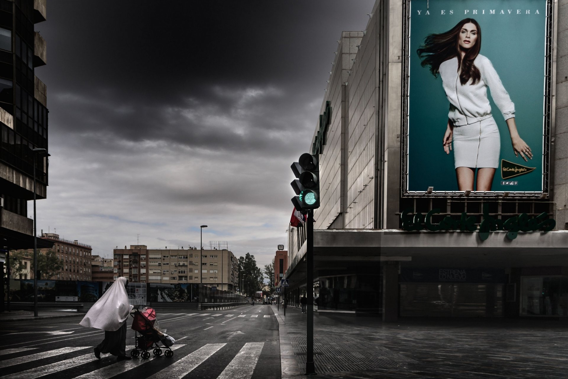 Пустая улица. Велосипед , стоящий рядом с клумбой цветов