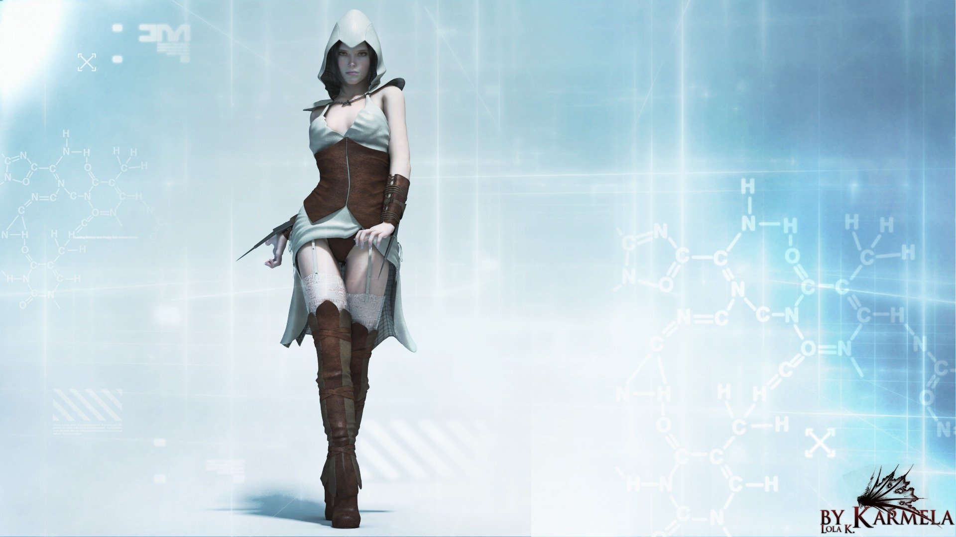Рендеринг. Девушка убийца решительно идет вперед, чтобы завершить реализовать задуманное
