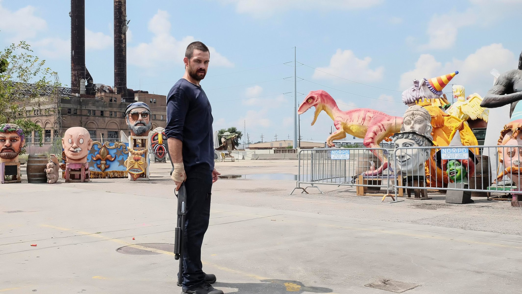 Энтони старр с оружием на детском аттракционе