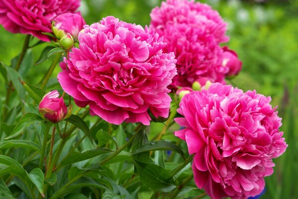 Красивый куст розовых пионов