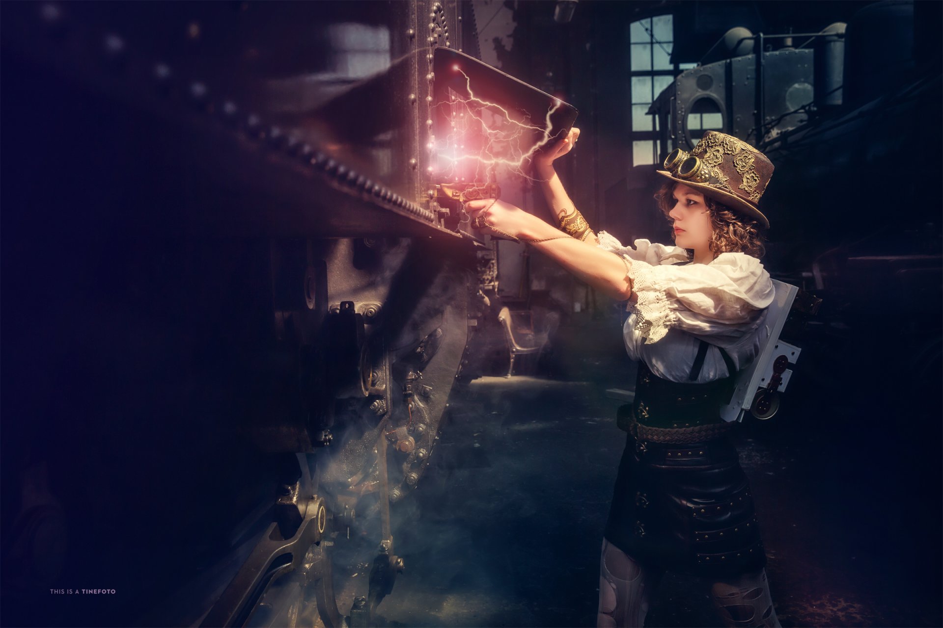 Фэнтези-рисунок грозового неба и летательного аппарата
