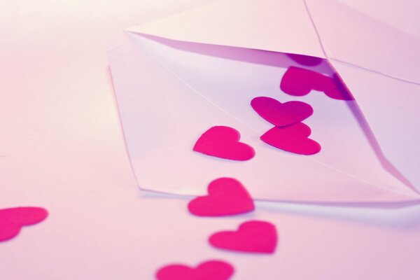 Любовное письмо в конверте с росыпью розовых сердечек