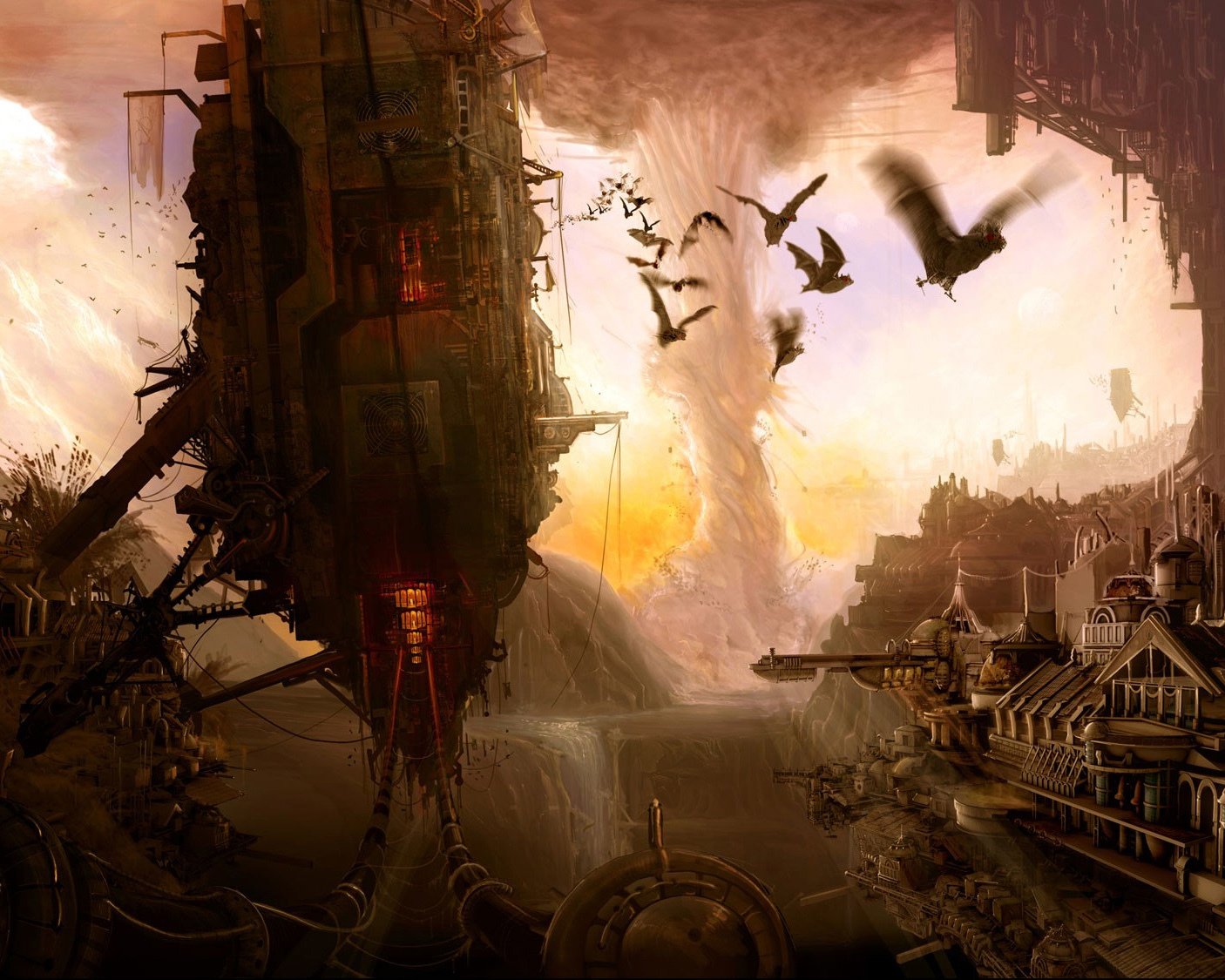 Разрушенный город смерчем только летуче мыши