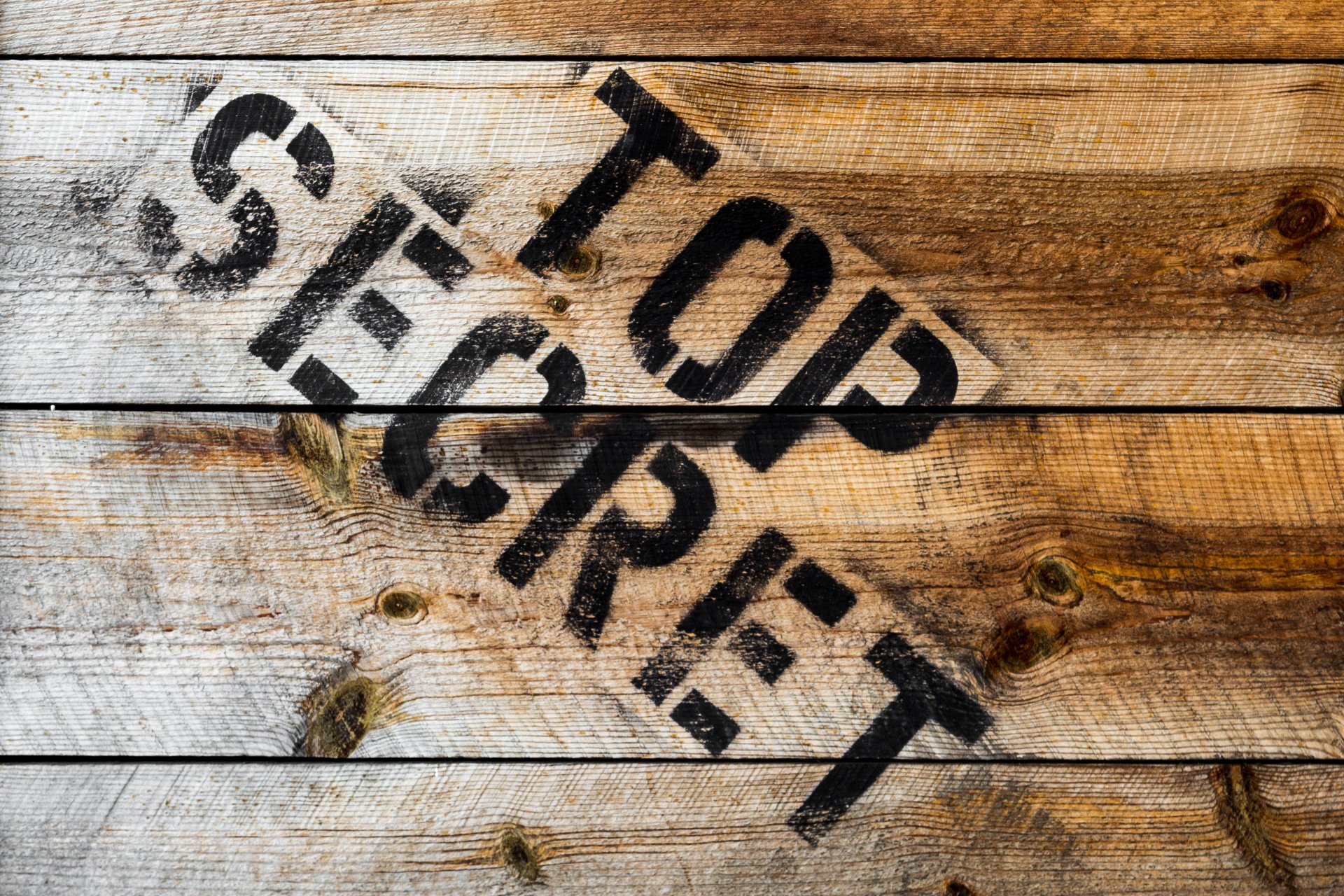 На деревянных досках чёрная надпись совершенно секретно