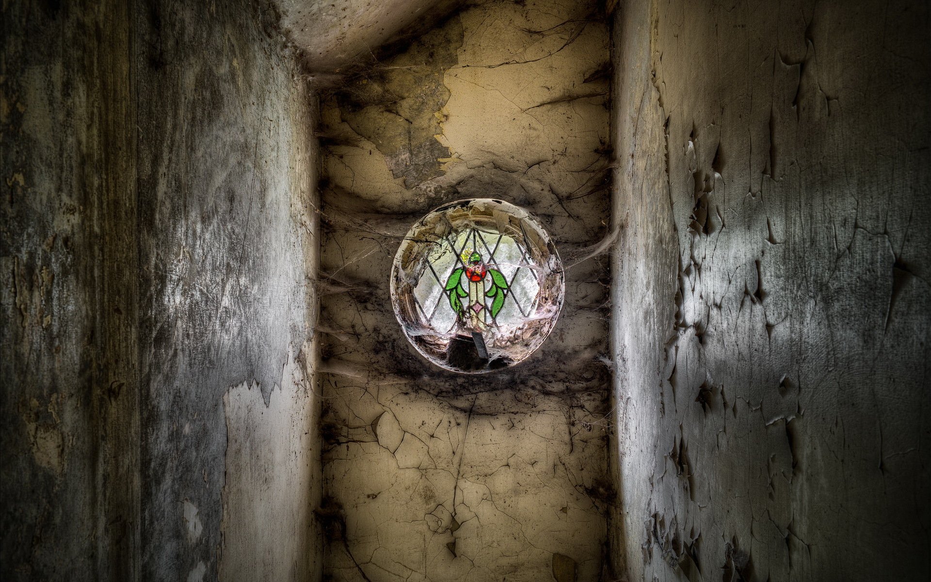 Цветной витраж обмотанный паутиной